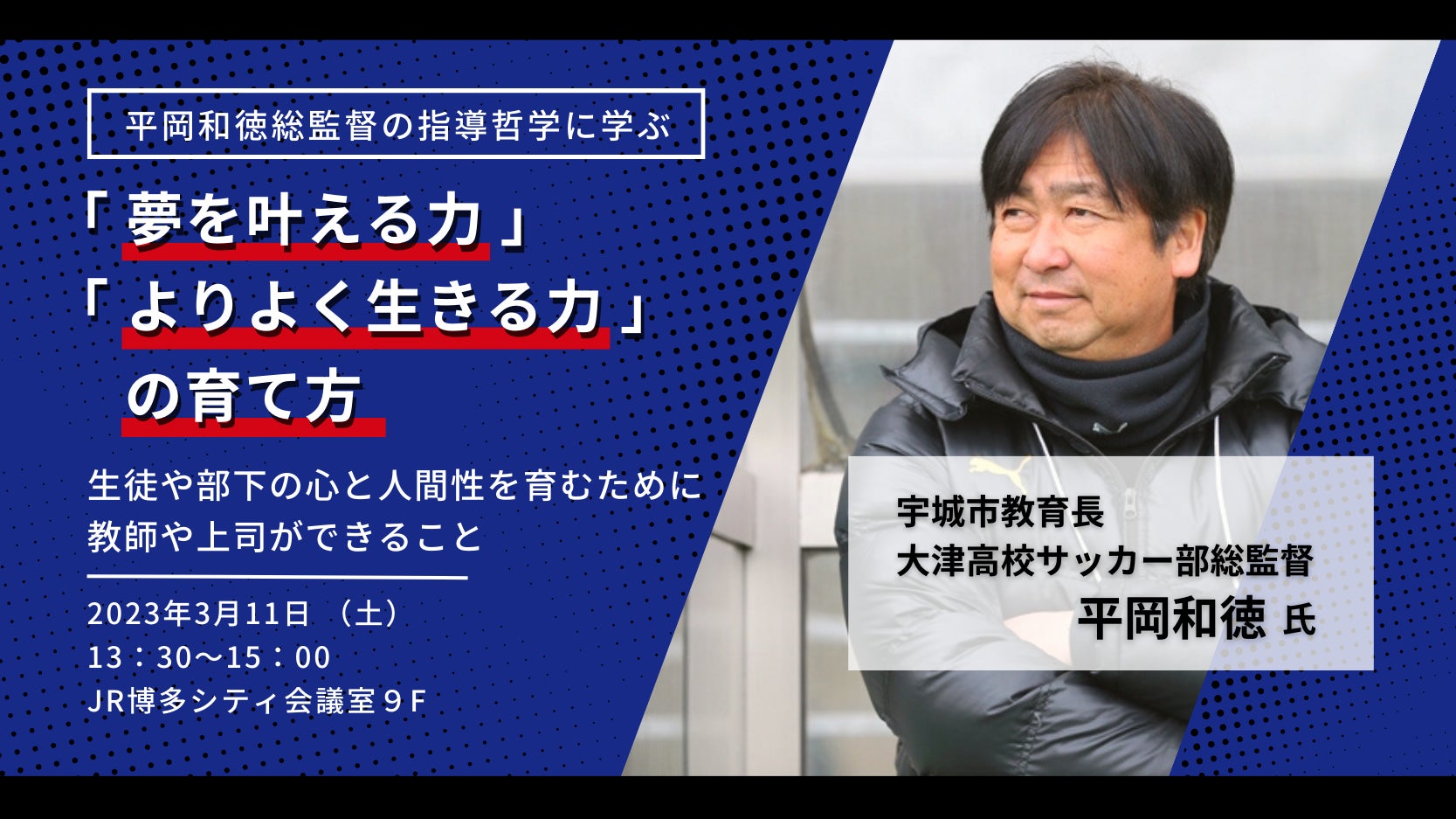 2023年3月11日(土)に、大津高校サッカー部 平岡和徳総監督の講演会を福岡・博多で開催します。