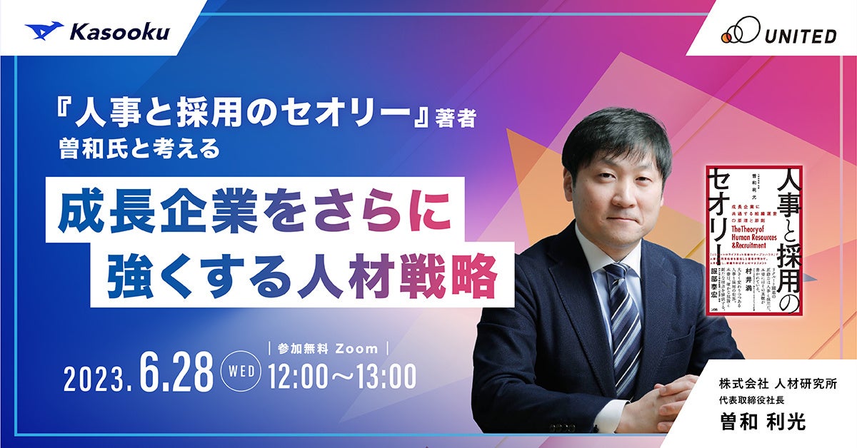 【ウェビナー開催に関するお知らせ】『人事と採用のセオリー』曽和氏と考える成長企業をさらに強くする人材戦略2023年6月28日(水)12:00〜開催