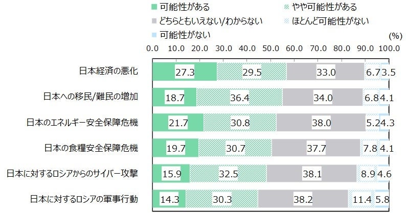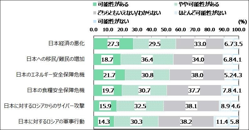 ・ウクライナ情勢の影響により各脅威が起こる可能性(n=1,000)