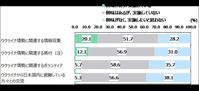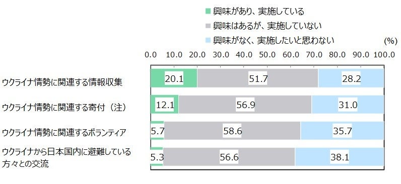 ウクライナ情勢に関する支援活動 「実施している」 寄付12.1%、ボランティア5.7%