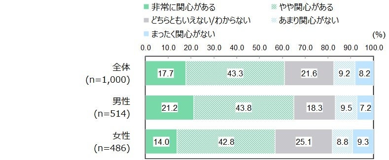 ・ ウクライナ情勢に対する関心度(n=1,000)