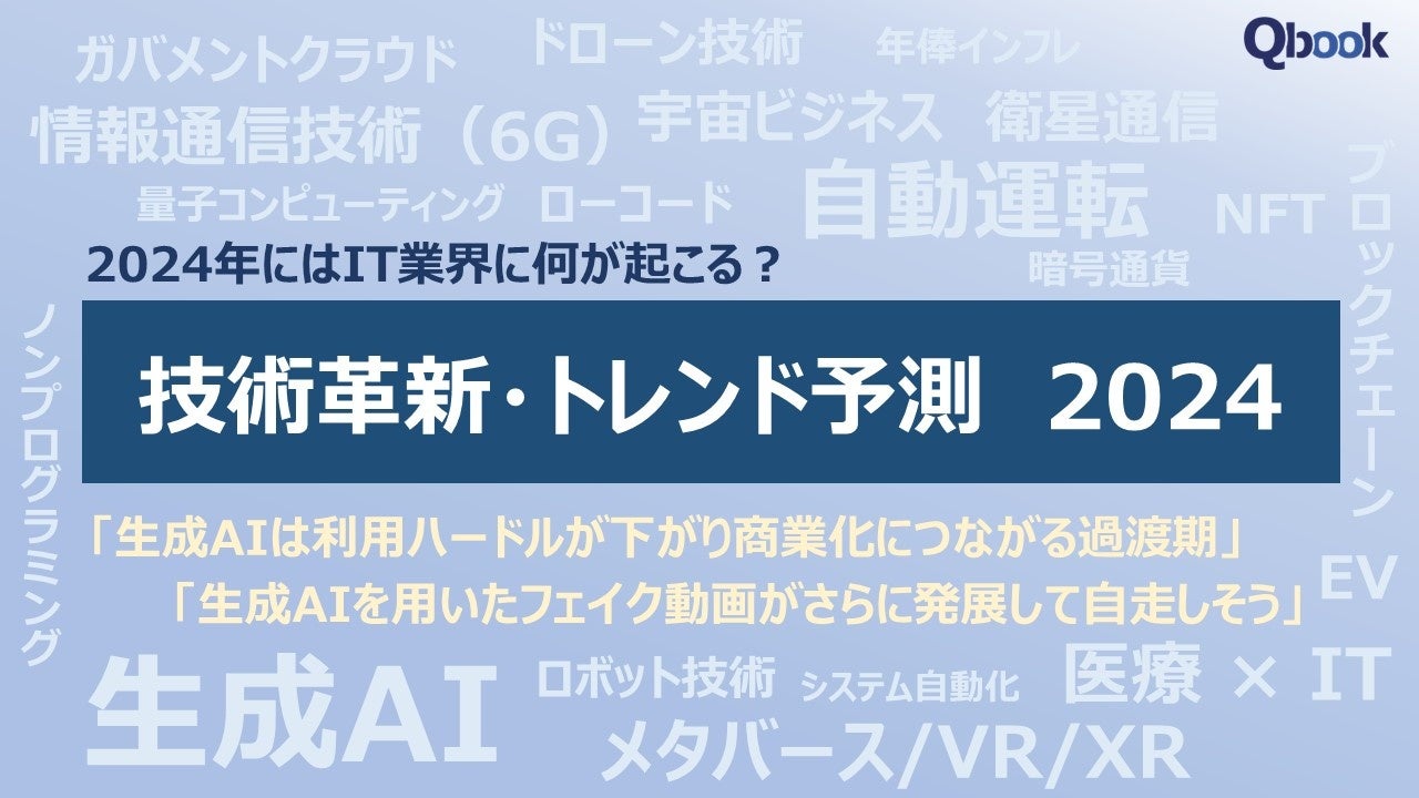 2023年を振り返ってみると、日本国内においては急激な物価高や円安が進むなど、我々の生活に近い所で変化の大きい一年でした。それでは2024年のIT業界は、一体どんな技術革新が待っているのでしょうか。今回Qbookでは、IT関連のお仕事をされている方にアンケートを取り、調査結果としてまとめました。
