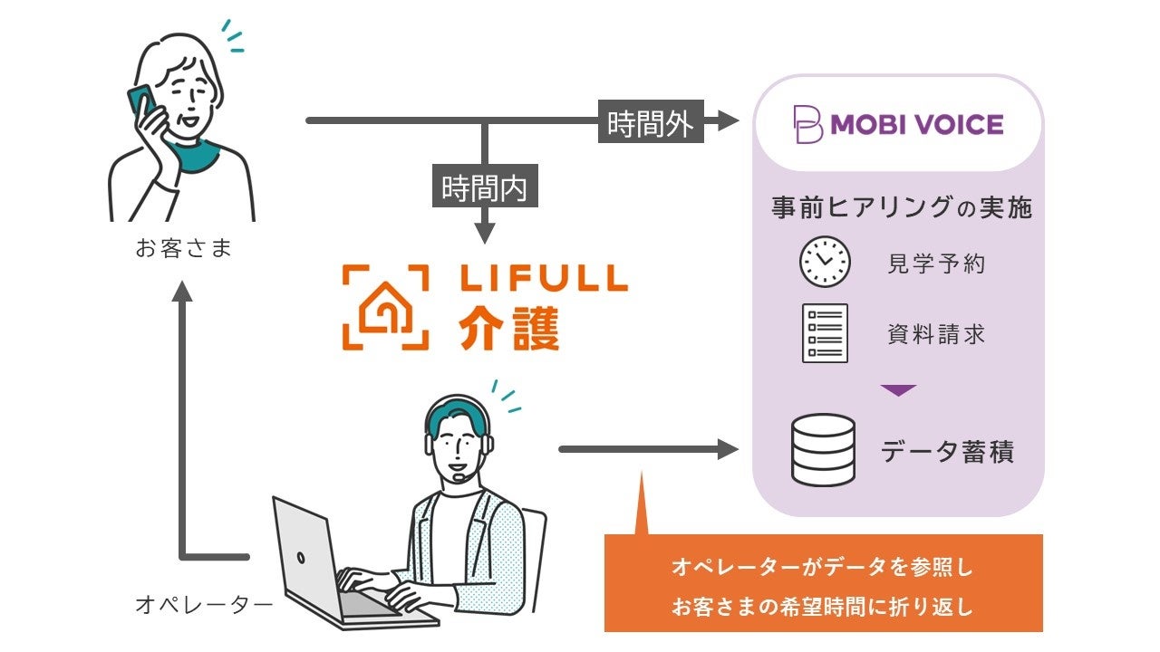 コンタクトセンター向けCXソリューションを開発・提供するモビルス株式会社(本社:東京都港区、代表取締役社長:石井智宏、以下「当社」)は、この度、株式会社LIFULL senior(本社:東京都千代田区、代表取締役:泉雅人)が運営する、老人ホーム・高齢者住宅検索サイト「LIFULL 介護」の「LIFULL 介護 入居相談室」にAIボイスボット「MOBI VOICE(モビボイス®)を導入しました。これにより、「LIFULL 介護 入居相談室」にて営業時間外の電話自動応答サービスが開始されたことを併せてお知らせします。
