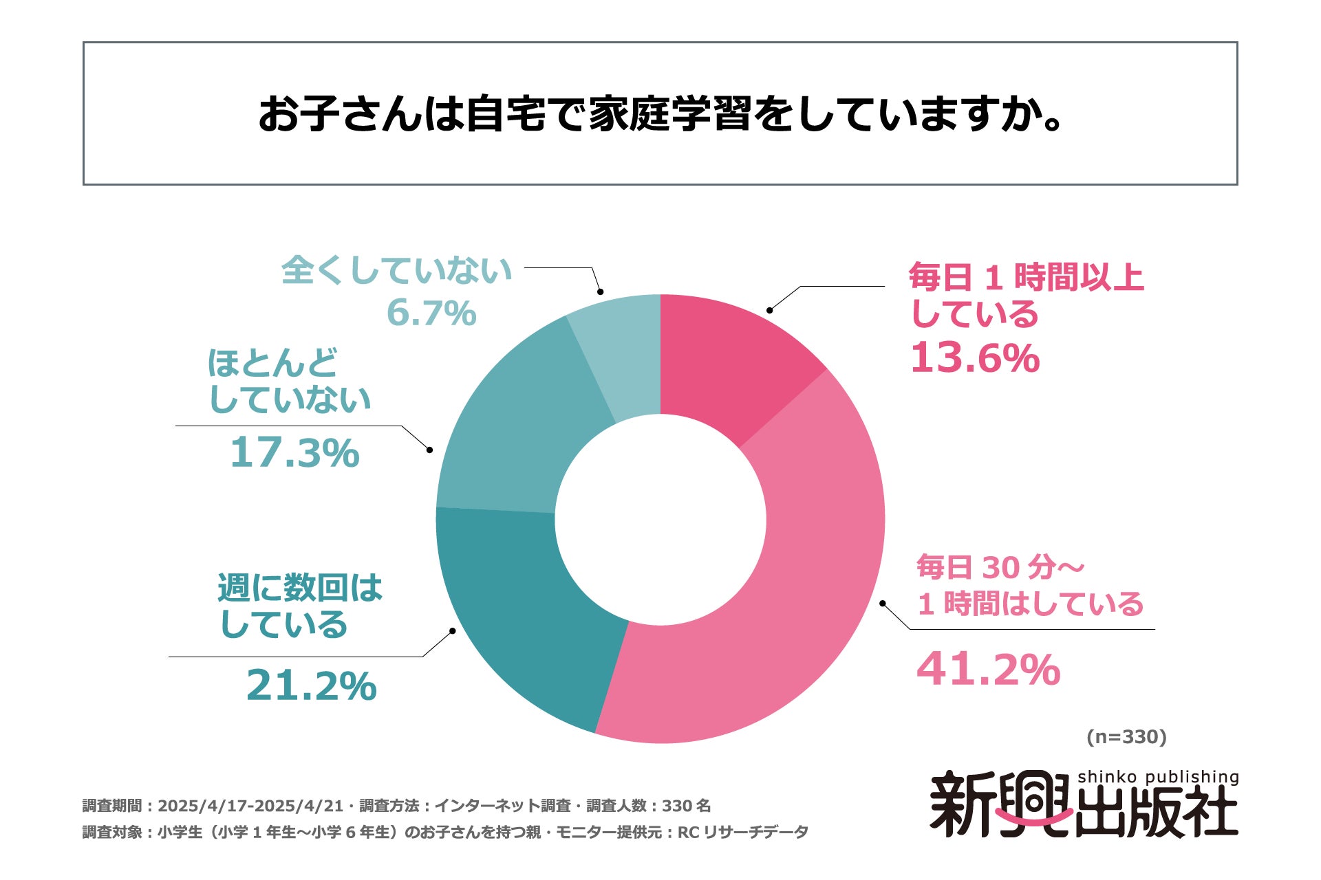 株式会社新興出版社啓林館(本社:大阪市天王寺区、代表取締役社長:佐藤 諭史)は、小学生(小学1年生~小学6年生)の子どもを持つ親を対象に「小学生の家庭学習における親の悩み」に関する調査を実施しました。