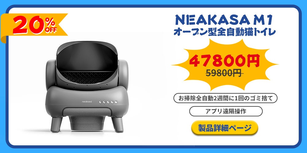 また、本記事をご覧くださった皆様に、人気商品「NEAKASA M1全自動猫トイレ」の4500円引きのクーポンを配布いたします。