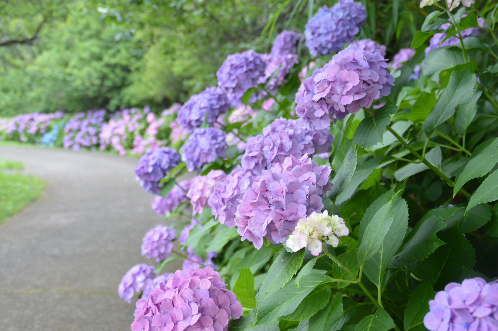 また、梅雨の時期の花「紫陽花(アジサイ)」約500株も麗しい色を添えます。