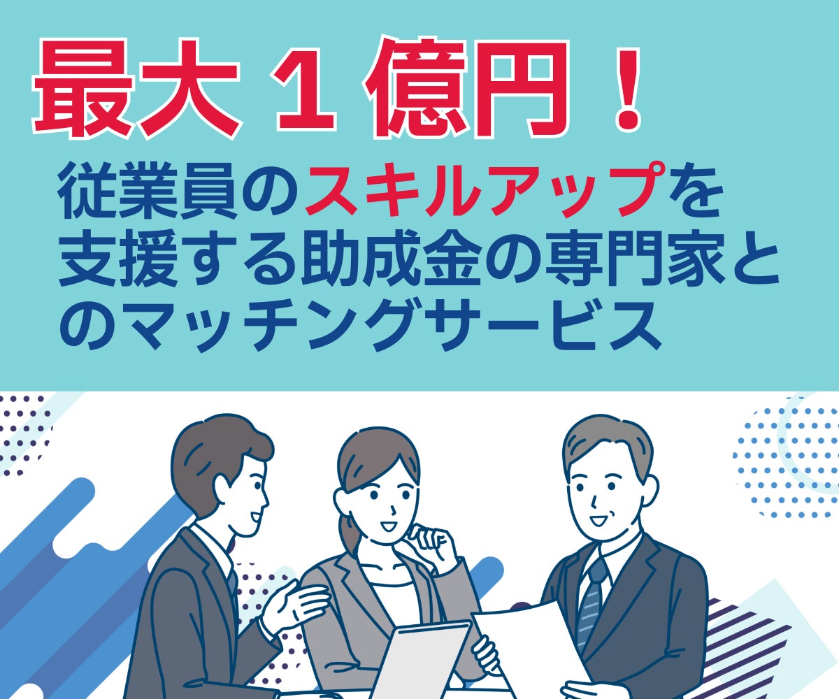 リアリゼイションは、最大補助額1億円の人材開発支援助成金に精通した専門家とのマッチングサービスを開始いたしました。