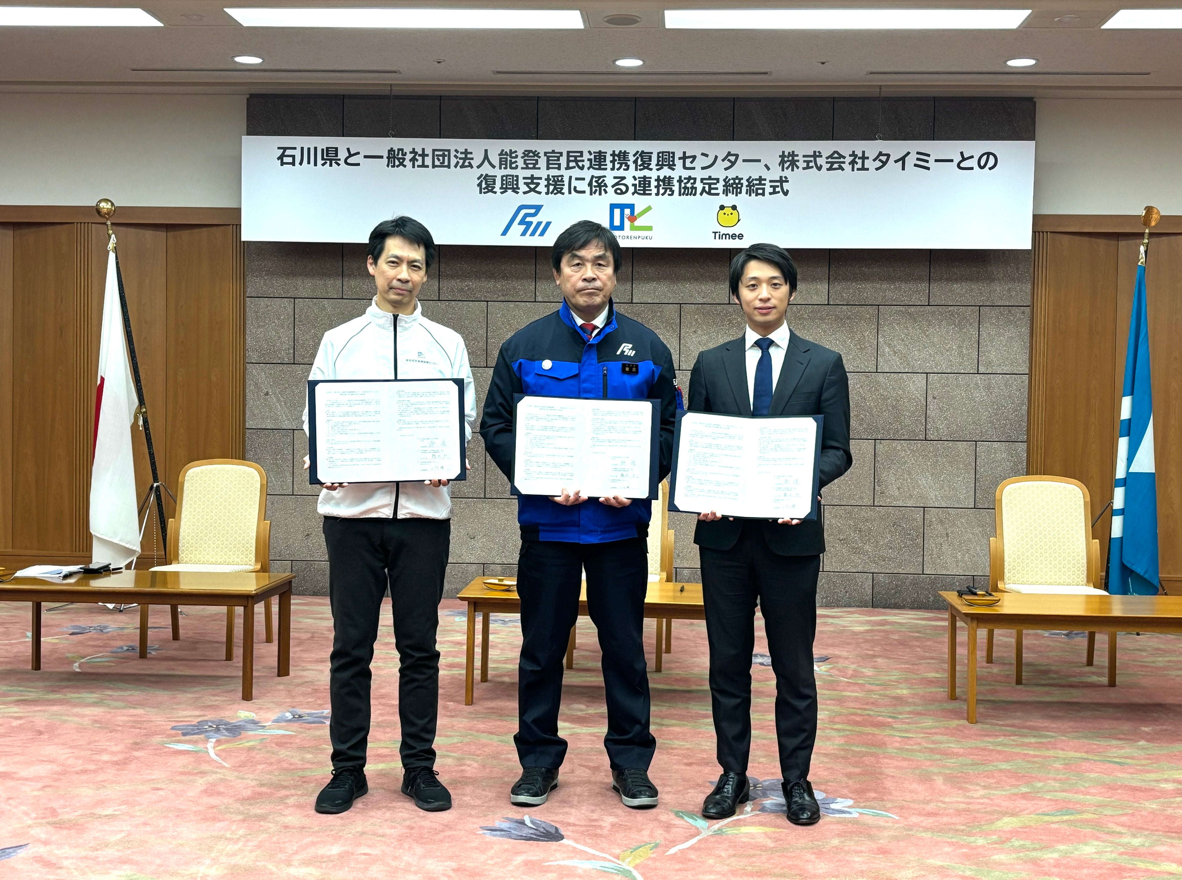 タイミー、石川県と能登官民連携復興センターとの復興支援に係る連携協定を締結