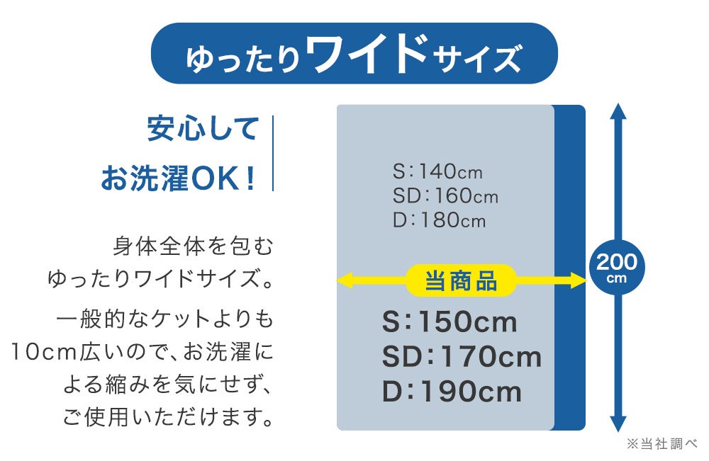 【シングルロング】150×200cm 【セミダブルロング】170×200cm 【ダブルロング】190×200cm |