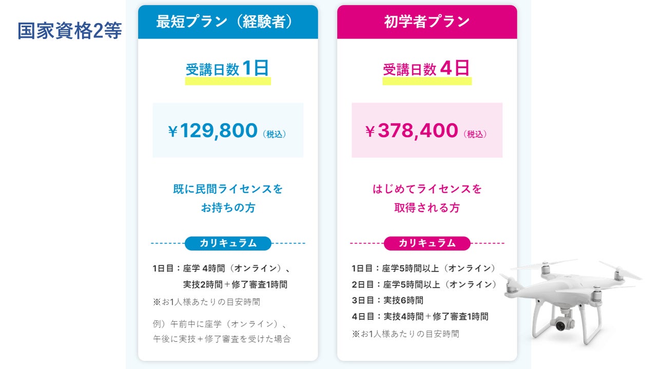 上記講習では、資格取得のための講習ではございませんが、通常そらメディアではドローンの国家資格<無人航空機操縦士(一等・二等)>の資格取得に向けた講習を行っております。