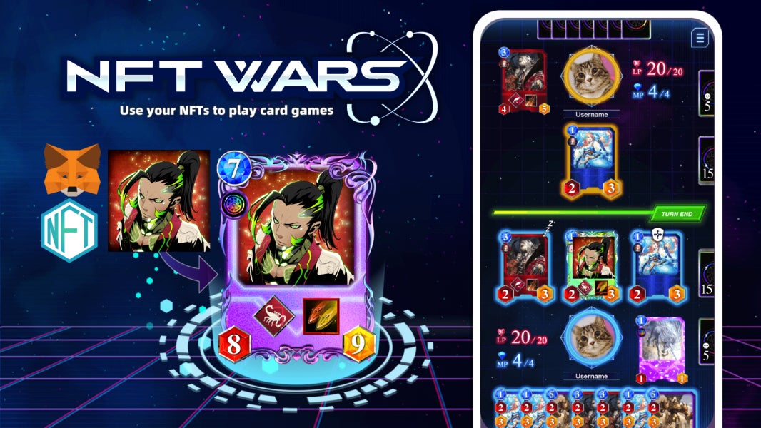 『NFTWars』は、手軽にNFTプロジェクトにゲームのユーティリティを付与できるサービスです。ユーザーはウォレットで所有するNFTを使用し、様々なNFTプロジェクトのカードゲームで遊ぶ世界の実現を目指します。