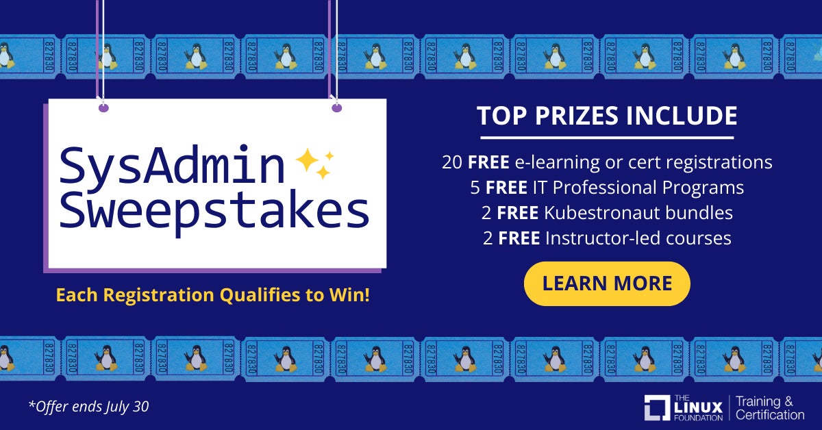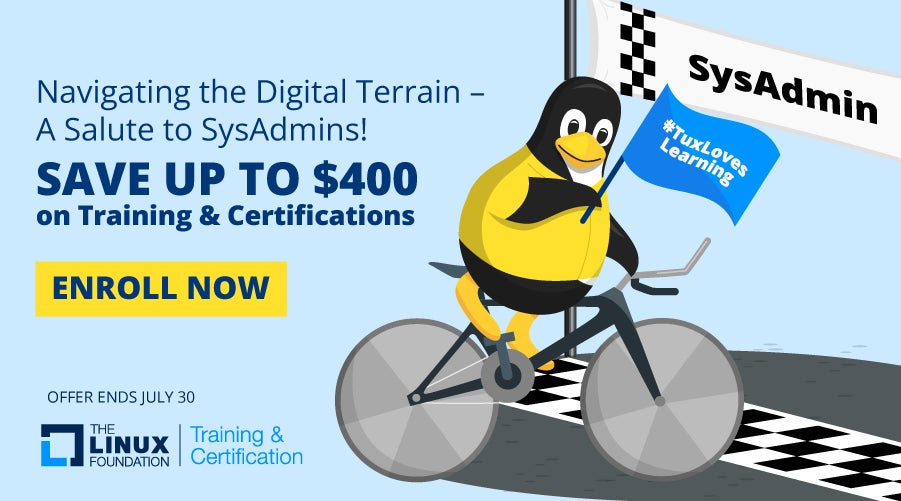 SysAdmin感謝デーを祝して : LFトレーニングコース&認定試験が最大US$400オフ+SysAdmin懸賞当選のチャンス ー 7月31日8:59AM (日本時間) まで