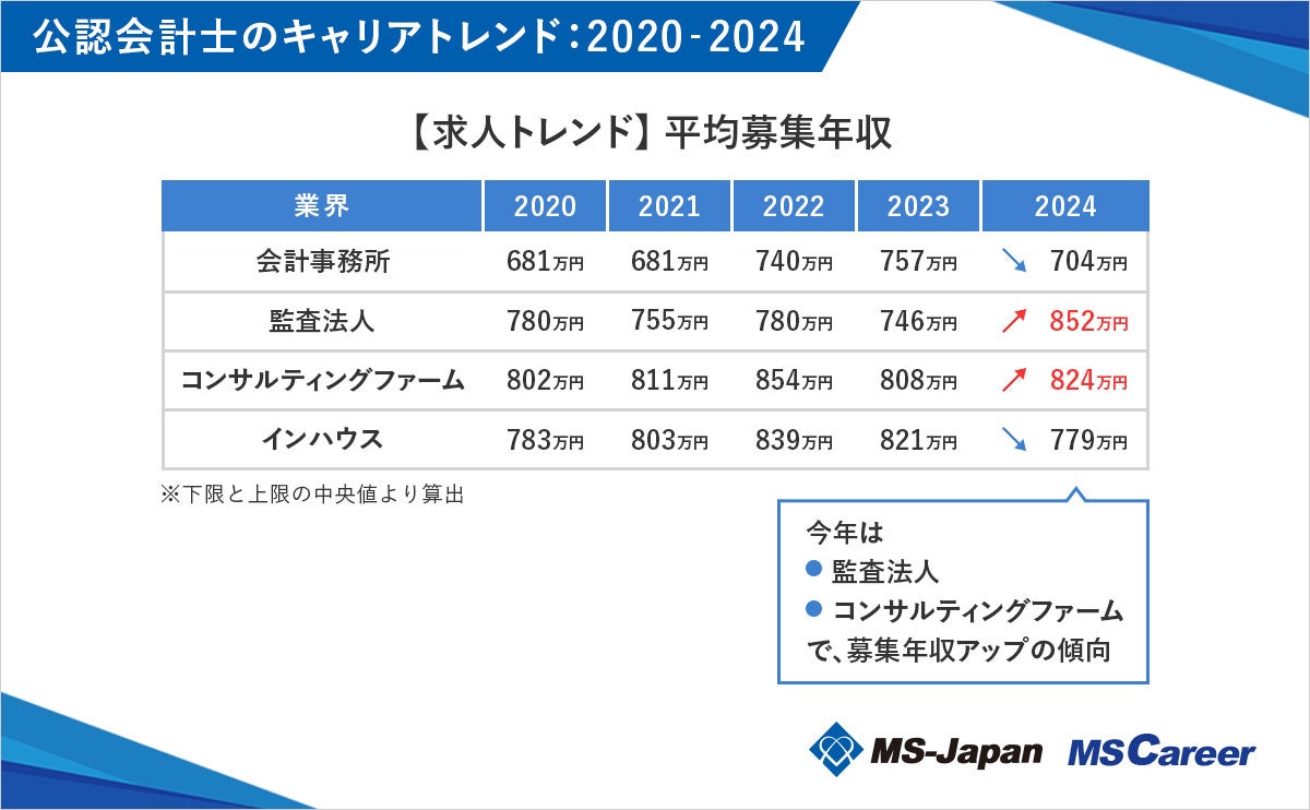 MS-Japanが「過去5年の公認会計士キャリアトレンド」レポートを公開。監査法人の募集年収は過去5年最高で「平均???万円」