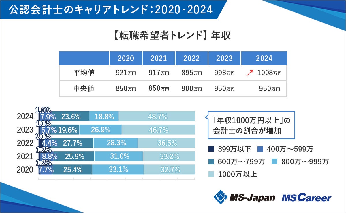転職希望者のトレンド①【会計士の平均年収は「1,008万円」で、前年から15万アップ】