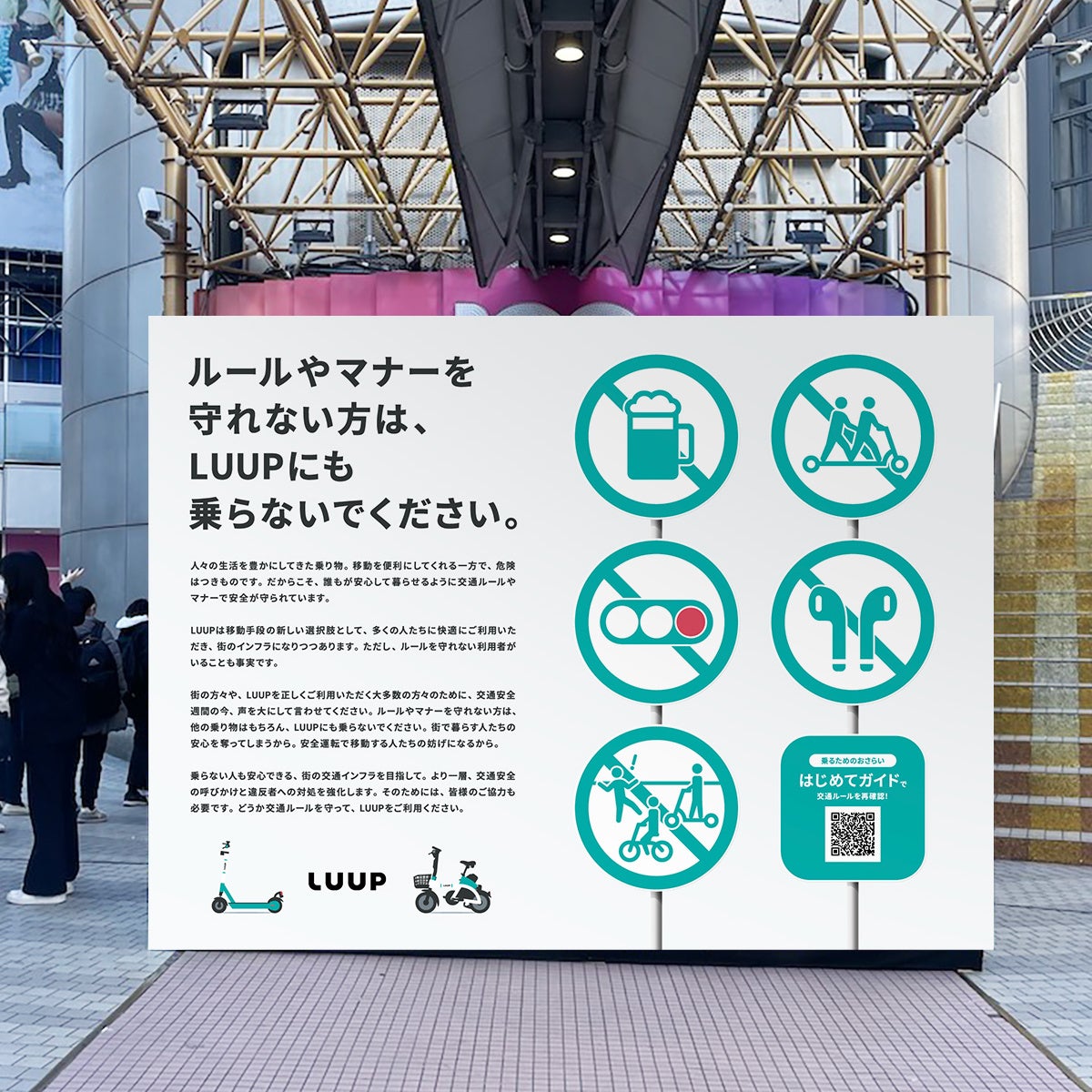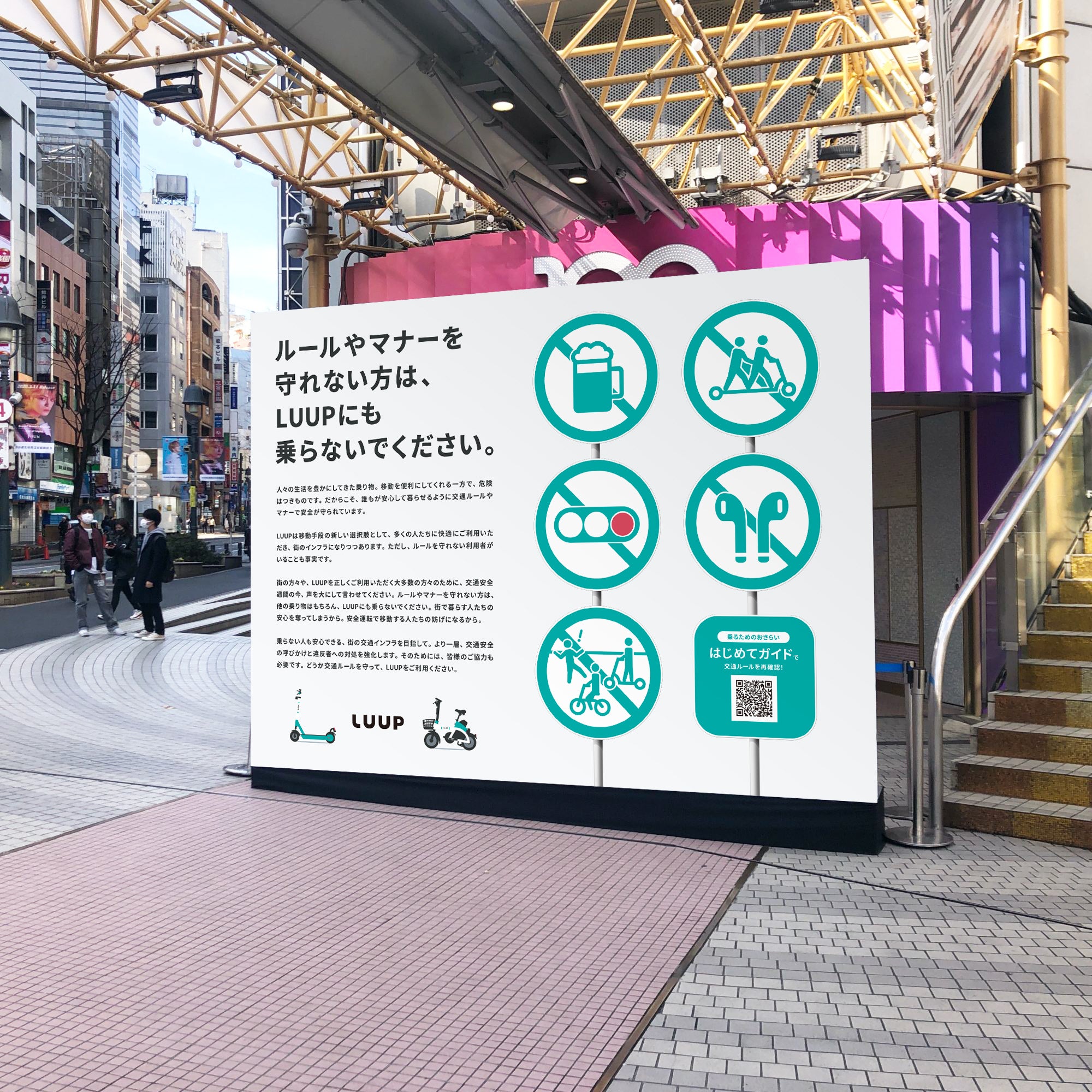 1. SHIBUYA109渋谷店 店頭イベントスペースへの啓発広告「ルールやマナーを守れない方は、LUUPにも乗らないでください。」の掲出