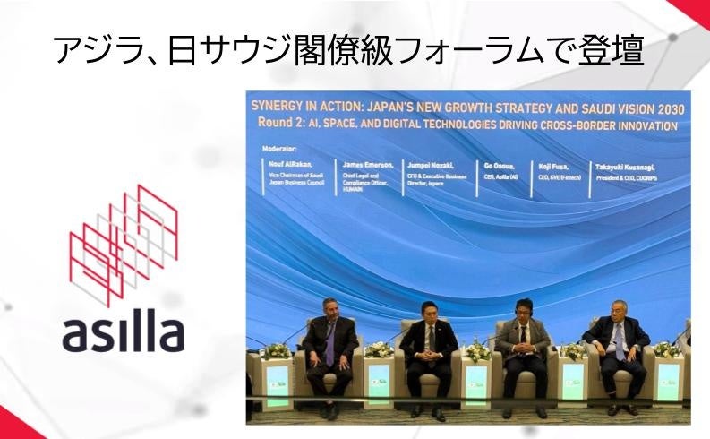 「テクノロジーの力で安心で快適な世界へ」をミッションに、行動認識AIを基盤としたプロダクトを展開する株式会社アジラ(本社:東京都町田市、代表取締役CEO 兼 COO:尾上 剛、以下「アジラ」)は、2026年1月11日にサウジアラビアで開催された 「SAUDI-JAPAN MINISTERIAL INVESTMENT FORUM(日サウジ閣僚投資フォーラム)」 において、代表の尾上がパネリストとして登壇したことをお知らせいたします。