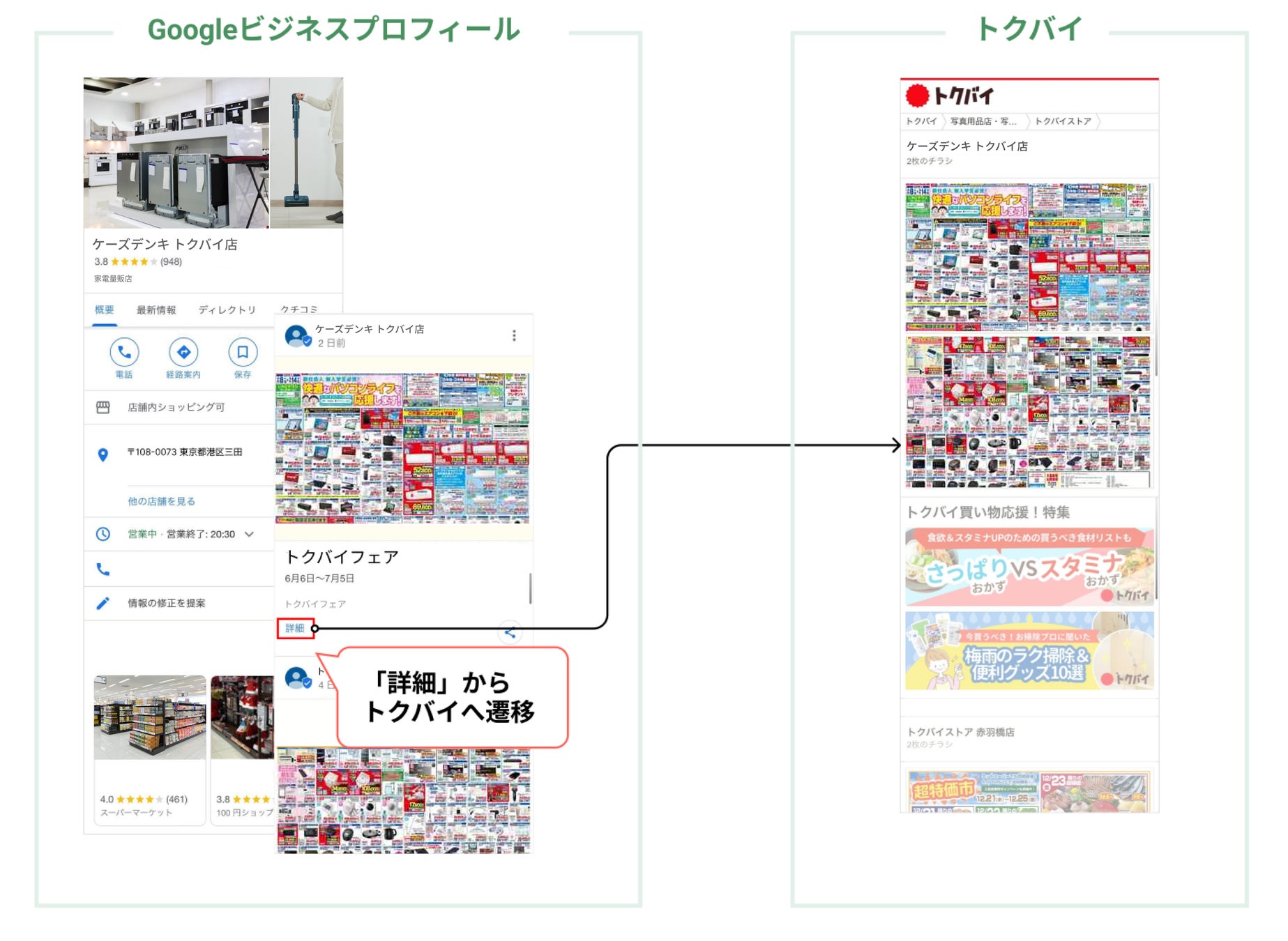 ▼ユーザーはGoogleでチラシをチェック、詳細はリンク先の「トクバイ」で確認