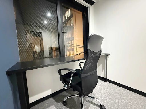 個室内にはゆったりとしたデスクと人間工学に基づいたチェアを配置し、長時間の作業でも疲れにくい快適な環境を実現。