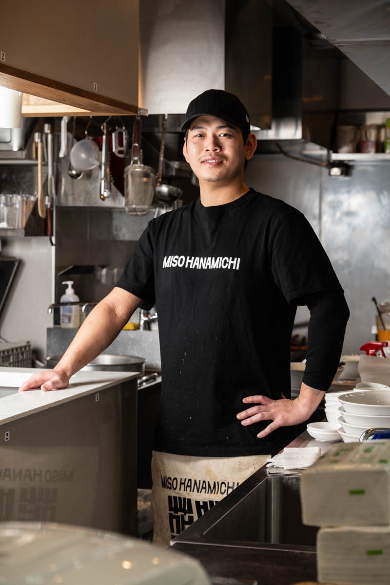 「MISO HANAMICHI 味噌花道 三田店」は、味噌の「香り」と「香ばしさ」を最大限に引き出すため、門外不出の味噌ダレをオーダーごとに高火力の中華鍋で焼き上げる、焼き味噌ラーメンの専門店です。数種類の鶏・豚などを用い、10時間以上かけて旨味を丁寧に抽出した濃厚スープに、焼いた味噌の香りが重なり、ひと口目から余韻まで力強いコクを楽しめます。麺は三河屋製麺の特注麺で、食べ応えのある極太麺。さらに、店内で毎日焼き上げる吊るし焼きの赤焼豚など、手仕事の旨さを重ねた一杯を提供します。