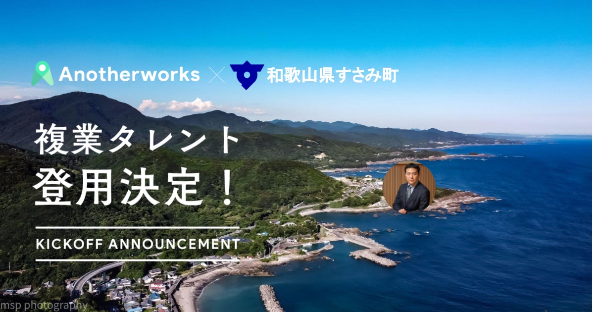 そこで弊社では、複業クラウドを活用し全国の自治体が抱えるさまざまな課題と、その課題を解決できるスキルをもつ複業人材とのマッチングを支援することで、地方創生に貢献できないかと考え、自治体との連携を推進しています。すさみ町とAnother worksは、2023年5月に協定を締結し、行政へ複業人材を登用する実証実験を開始しました。