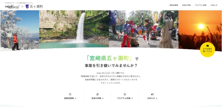 事業承継マッチングプラットフォーム「relay」、宮崎県五ヶ瀬町に特化した後継者募集の特設ページ「relay the local 五ヶ瀬町」を開設