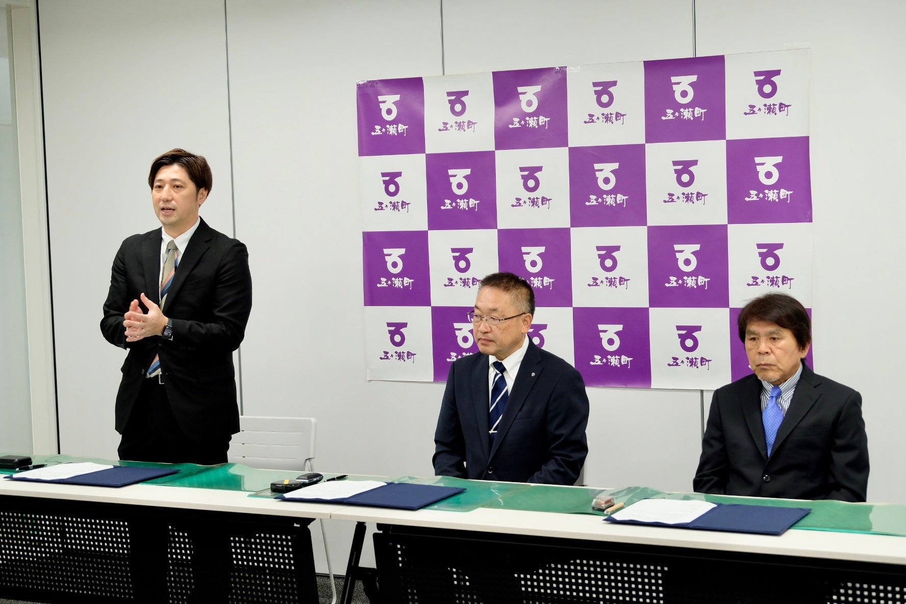 (写真左から)株式会社ライトライト代表取締役 齋藤隆太、五ヶ瀬町長 小迫幸弘氏、五ヶ瀬商工会長 真野公憲氏