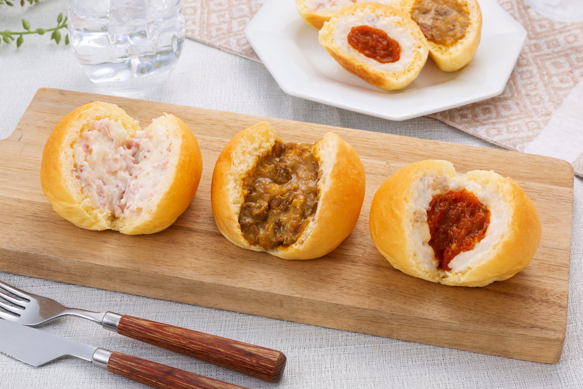 ポケットサンド(ベーコンポテト・チキングラタン・カレー)、カスタードシュークリーム