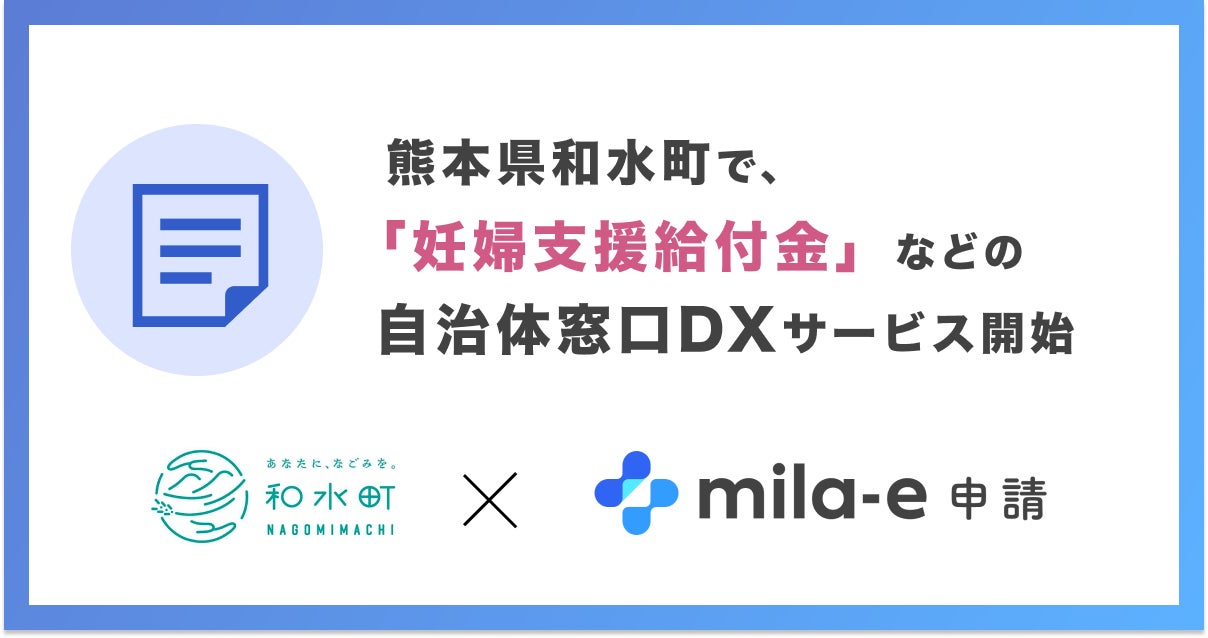 ミラボ、熊本県 和水町で 自治体窓口DXサービス「mila-e 申請」提供開始
