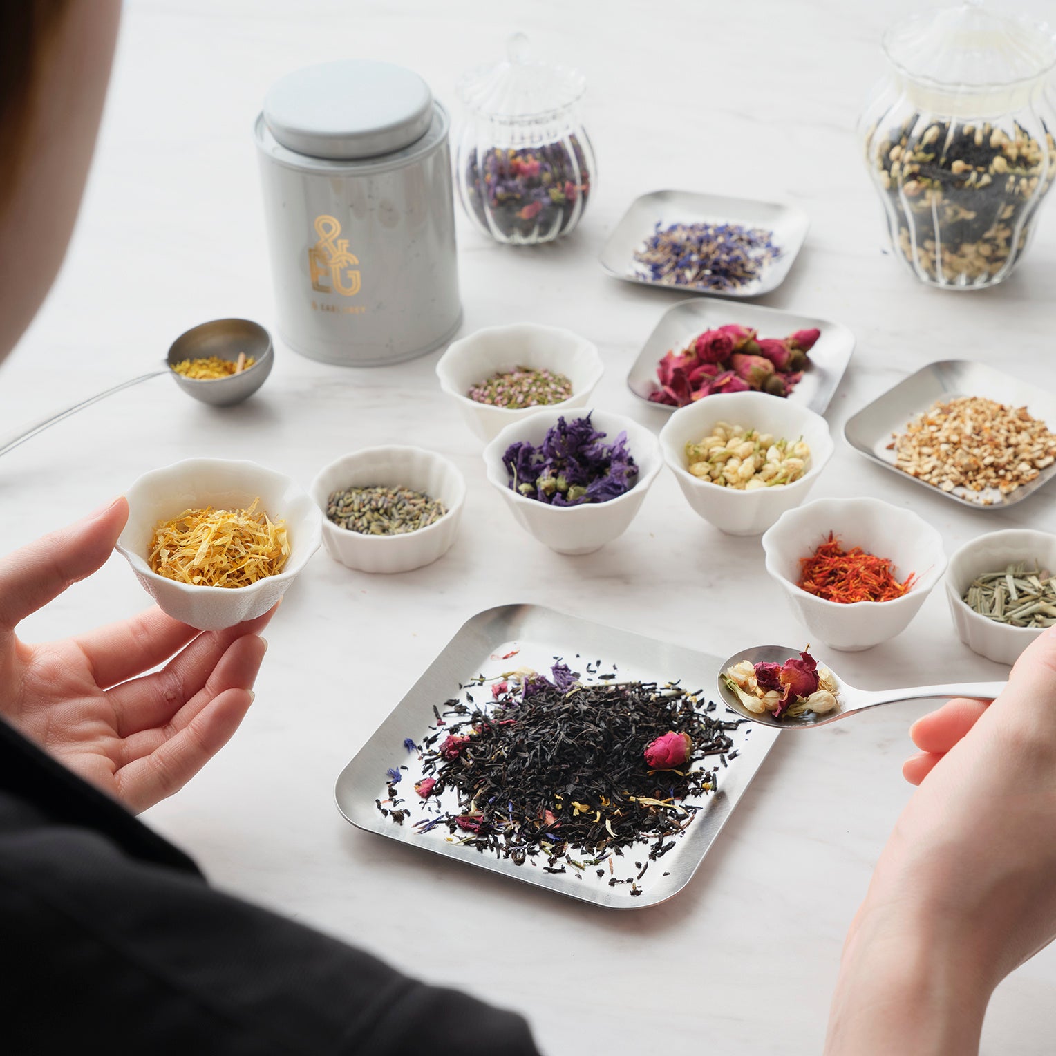 アールグレイ専門店ならではの天然ベルガモットにこだわった6種類の茶葉と、9種類のフラワーやハーブを組み合わせ、世界に1つ!あなただけの「オリジナルアールグレイ」をお作りいたします。