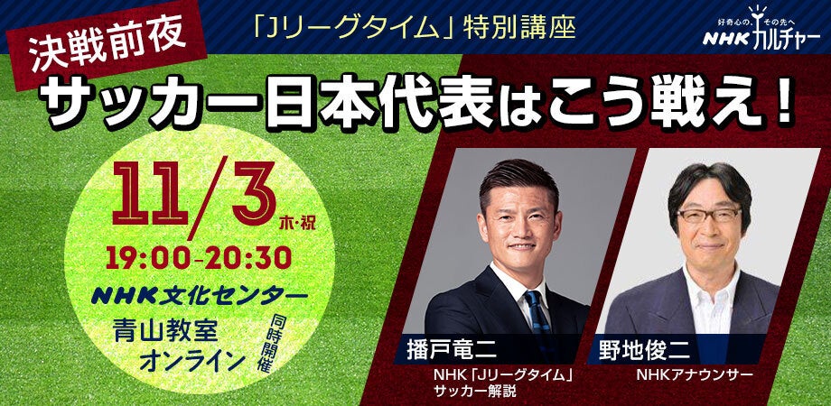 【NHKカルチャー】11/3「決戦前夜・サッカー日本代表はこう戦え!」興味津々の90分!サッカー解説の播戸竜二さんと NHKアナウンサーの野地俊二さんの講座を開催!