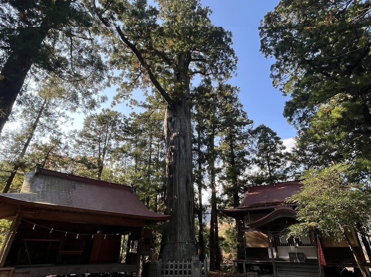 県内有数の大杉は、樹高45m、樹齢700年。勢いは衰えず、幹はまっすぐ高く伸び、「かながわの名木100選」に選ばれています。敷地に一歩踏み入ると、大杉を中心とした自然が作り出す壮大な景観に圧倒されました。