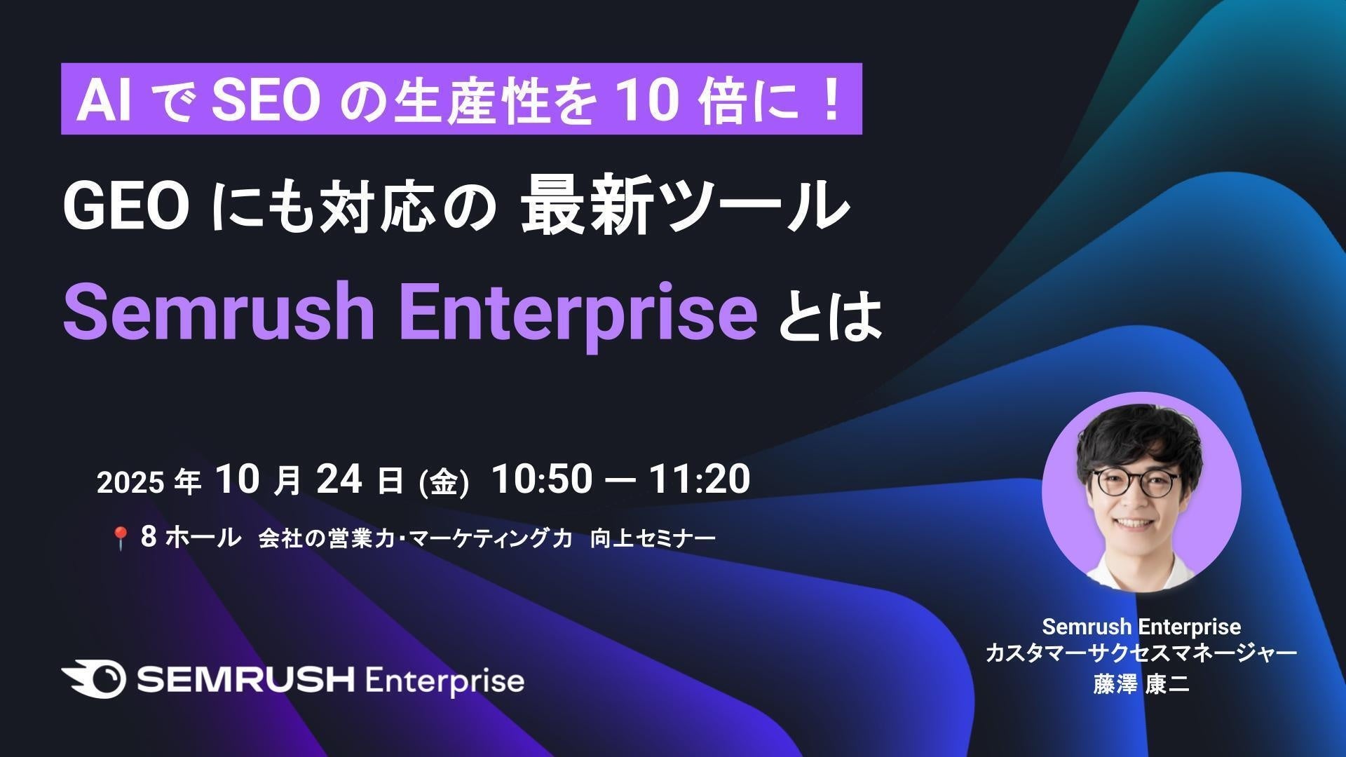 登壇テーマ:AIでSEOの生産性を10倍に!GEOにも対応の最新ツールSemrush Enterpriseとは