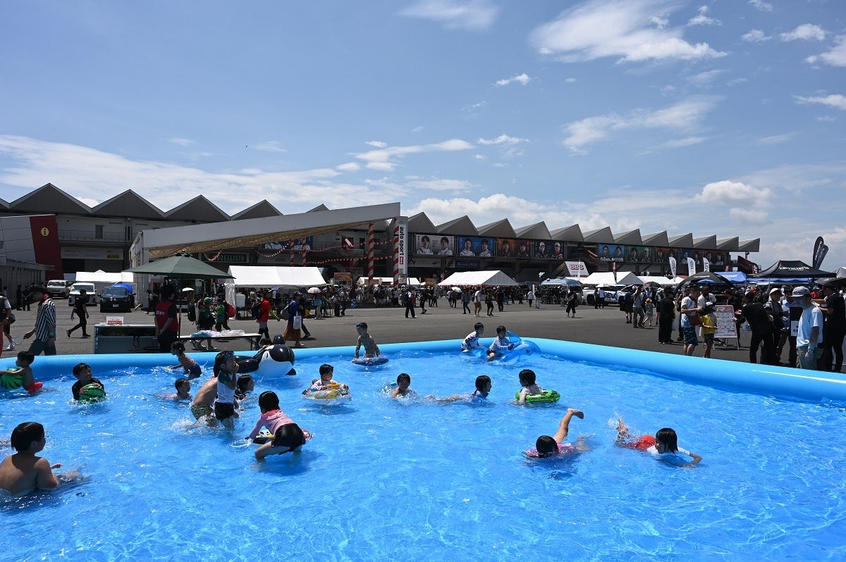イベント開催期間中、富士スピードウェイのイベント広場に今年もミニプールが出現!小学6年生以下のお子さまは、水着とバスタオルを持って広場へお集まりください。いつもと違う場所・特別感のあるプールで、暑くて楽しい夏をスタートさせよう!
