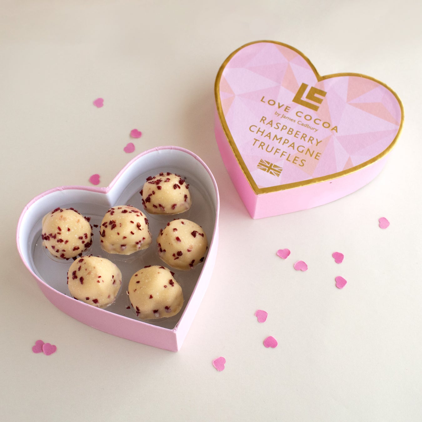 バレンタインにぴったりなハートのボックスに入ったスペシャルなトリュフ。ラズベリーピューレとシャンパンオイルをまとったクリームガナッシュを、ホワイトチョコレートとラズベリーチップでコーティング。ひと口ごとに幸せを感じられるトリュフはギフトにはもちろんのこと、ご自分へのご褒美チョコにもぴったり。