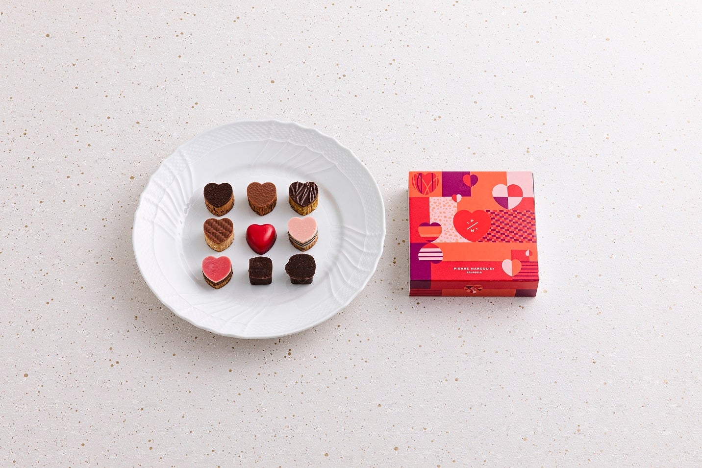 今年のバレンタインコレクションのテーマ「Touching hearts」モチーフのパッケージに新作の「レ クール ヌーヴォ」シリーズ6種とブランドを代表する赤いハートの「クール フランボワーズ」などを詰め合わせた贅沢なアソートメント。