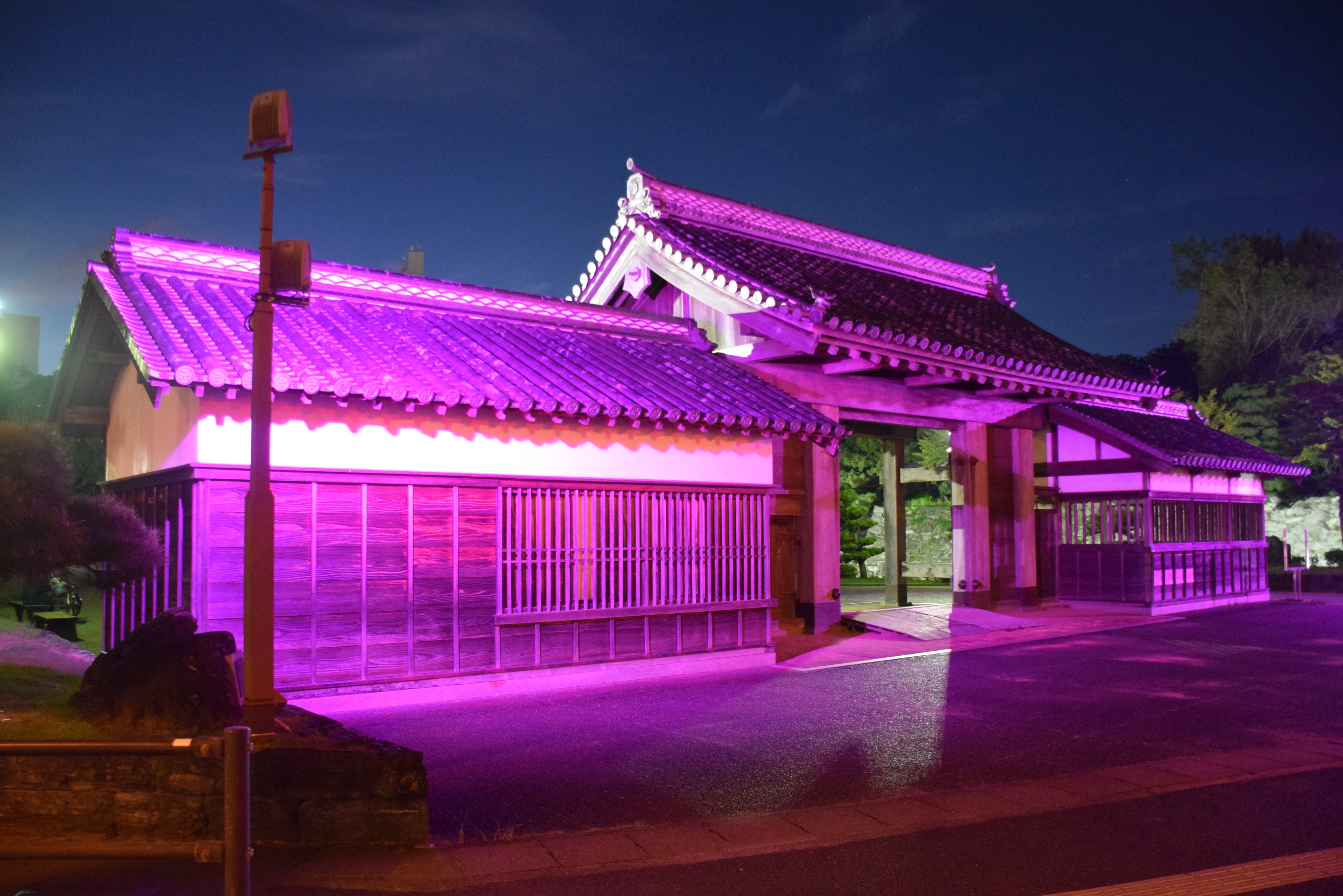 女性に対する暴力根絶のシンボルであるパープルリボンにちなんで、市の施設を紫色にライトアップします。