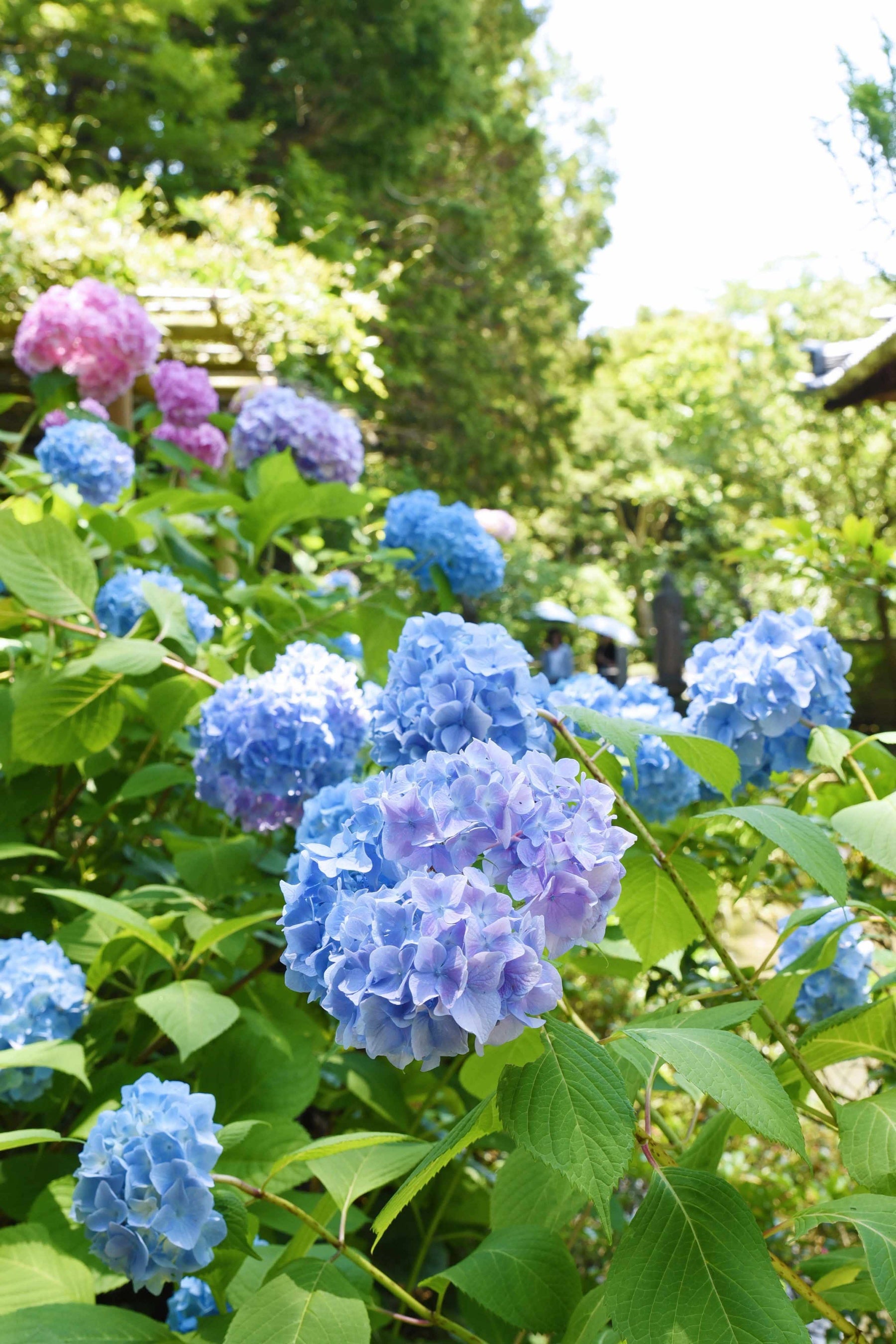 静かな境内には、青やピンクに色づいた美しいアジサイを一目見ようと、市民らが訪れ、撮影などを楽しんでいました(参拝料無料)。