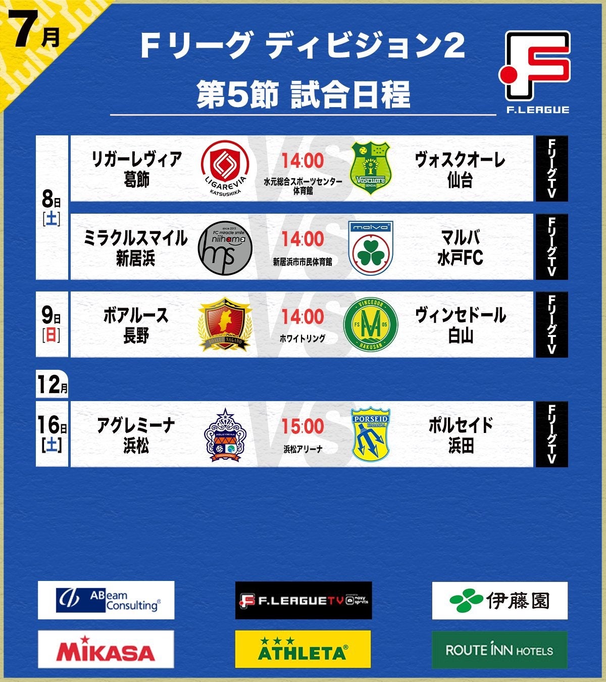 14:00 キックオフ 葛飾vs仙台 ▶▶https://fleague.stores.play.jp/lives/c0bb1a70-8e1c-4107-8df6-633b8f4f980e