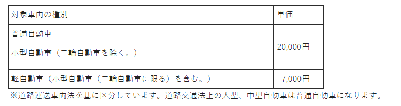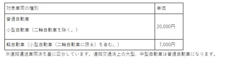 対象車両とその1台当たり単価は次のとおりです。