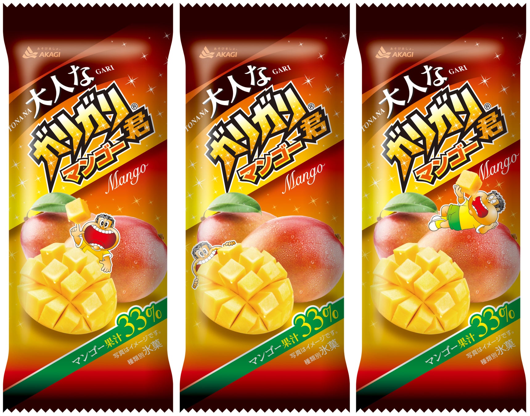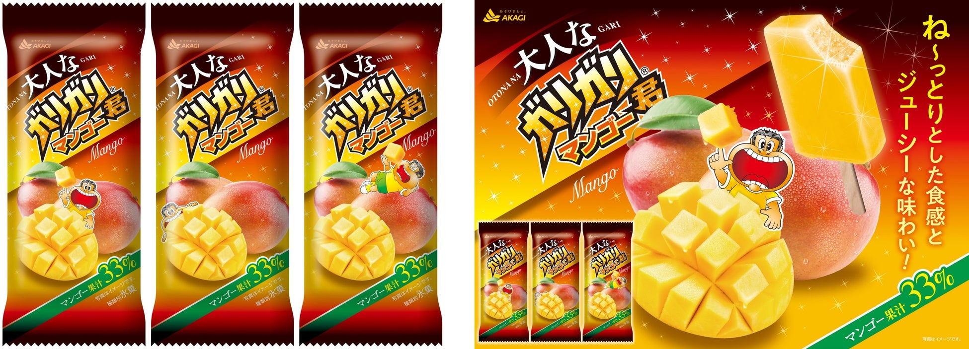 マンゴー果汁を33%使用し、氷のサイズも通常のガリガリ君より細かくすることでガリガリとした食感を抑え、マンゴー特有のねっとりとした食感とジューシーな味わいを表現した商品です。