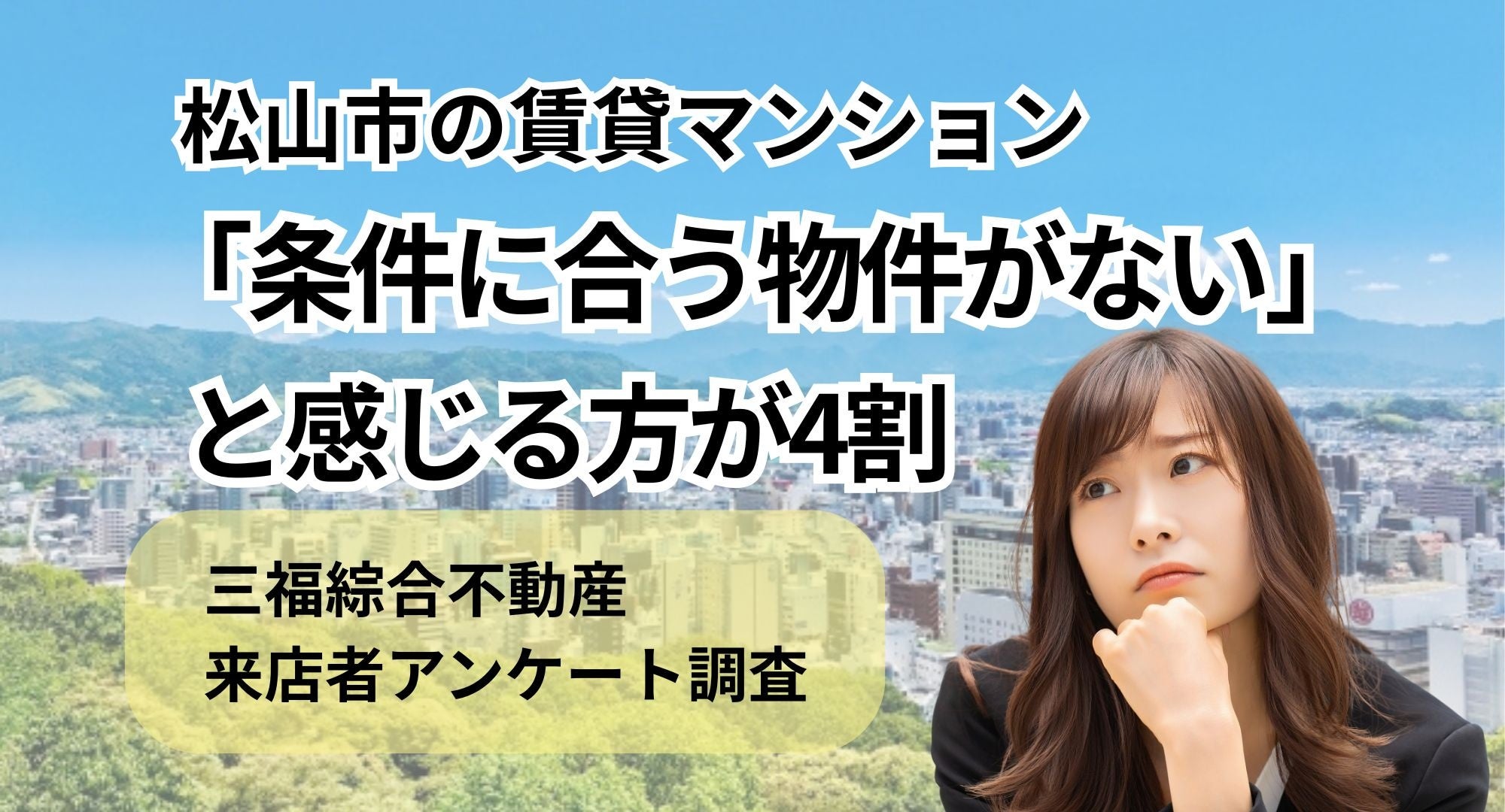 株式会社三福綜合不動産(愛媛県松山市)は、2025年9月に市内3店舗へ来店したお客様を対象に「部屋探しに関するアンケート調査」を実施しました。その結果、家賃や間取りといった基本条件を重視する一方で、「条件に合う物件が見つからない」「情報が多く判断が難しい」と感じている来店者が一定数いることが明らかになりました。