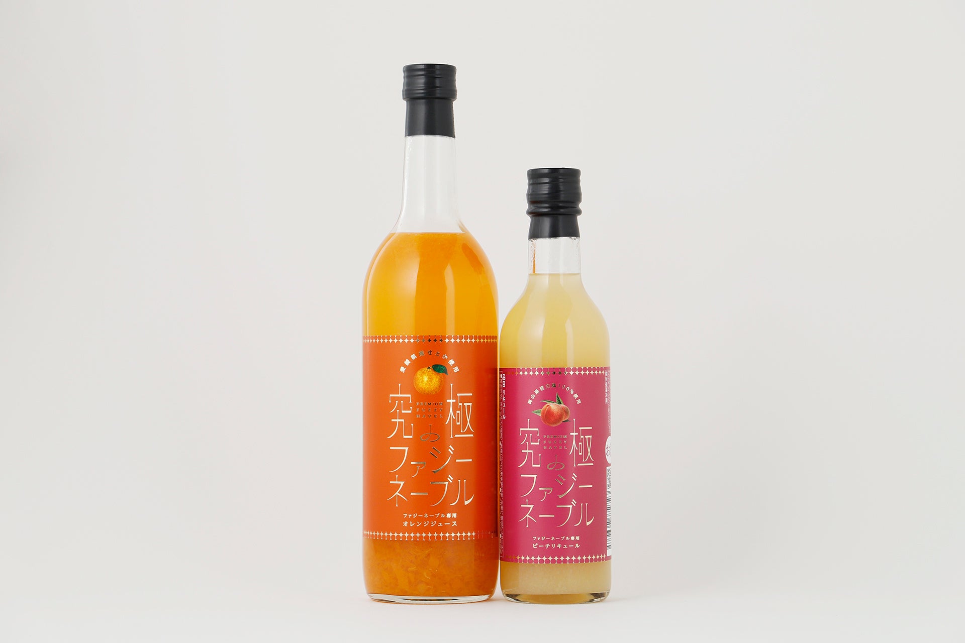 混合された1本ではなく、2本が合わさることで生まれる「素材の魅力が生きた美味しさ」を感じてほしいという思いから、「究極のファジーネーブル」は、ピーチリキュールと、オレンジジュースの2本セットでお届けします。黄金比は、ピーチリキュール:オレンジジュース=1:2がおすすめです。自分だけの「究極」の味わいを追求できるのも、セットの醍醐味です。