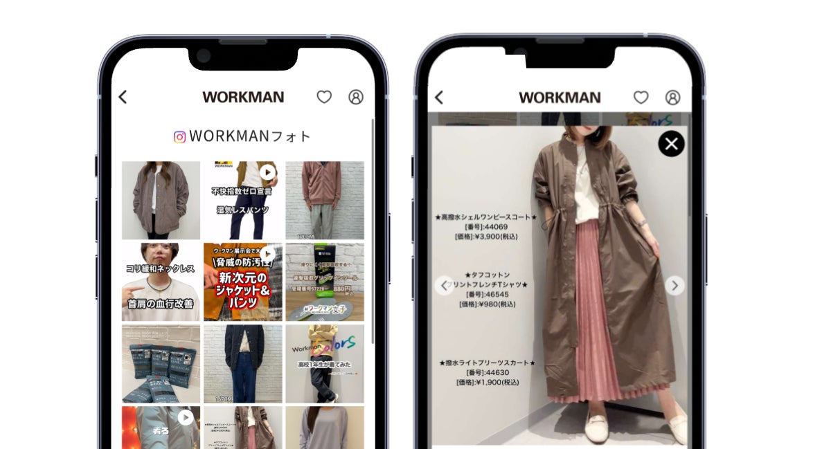 「WORKMANフォト」では、気になるコーディネートを選択すると、着用アイテムの一覧が表示され、各商品ページへスムーズに遷移できます。直感的かつ快適な購買体験も楽しめるようになりました。