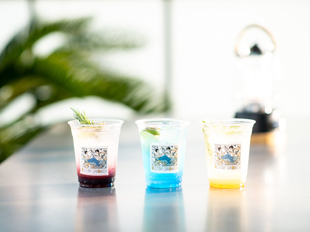 そして今回は7月12日(水)から販売するサンレモ氏初のイラスト本にslash川崎のコラボアートが掲載されることを記念して、販売同日よりホテル内レストラン「slash cafe&bar川崎」にて、本イベント限定の新しいコラボメニューにサンレモ氏をイメージして考案したアメリカンレモネード、バジルレモネードサワー、ノンアルコールジントニックの3種に“DESTINY SANDWICH”のステッカーをカップにデザインしたこの期間だけのコラボドリンクを販売。さらにslash川崎を利用する多くのゲストがホテル滞在中に楽しんでいる“映画”をテーマにしたキャンバス画の展示や“DESTINY SANDWICH“がバックプリントされたオリジナルTシャツやステッカーの2種のグッズを再販致します。