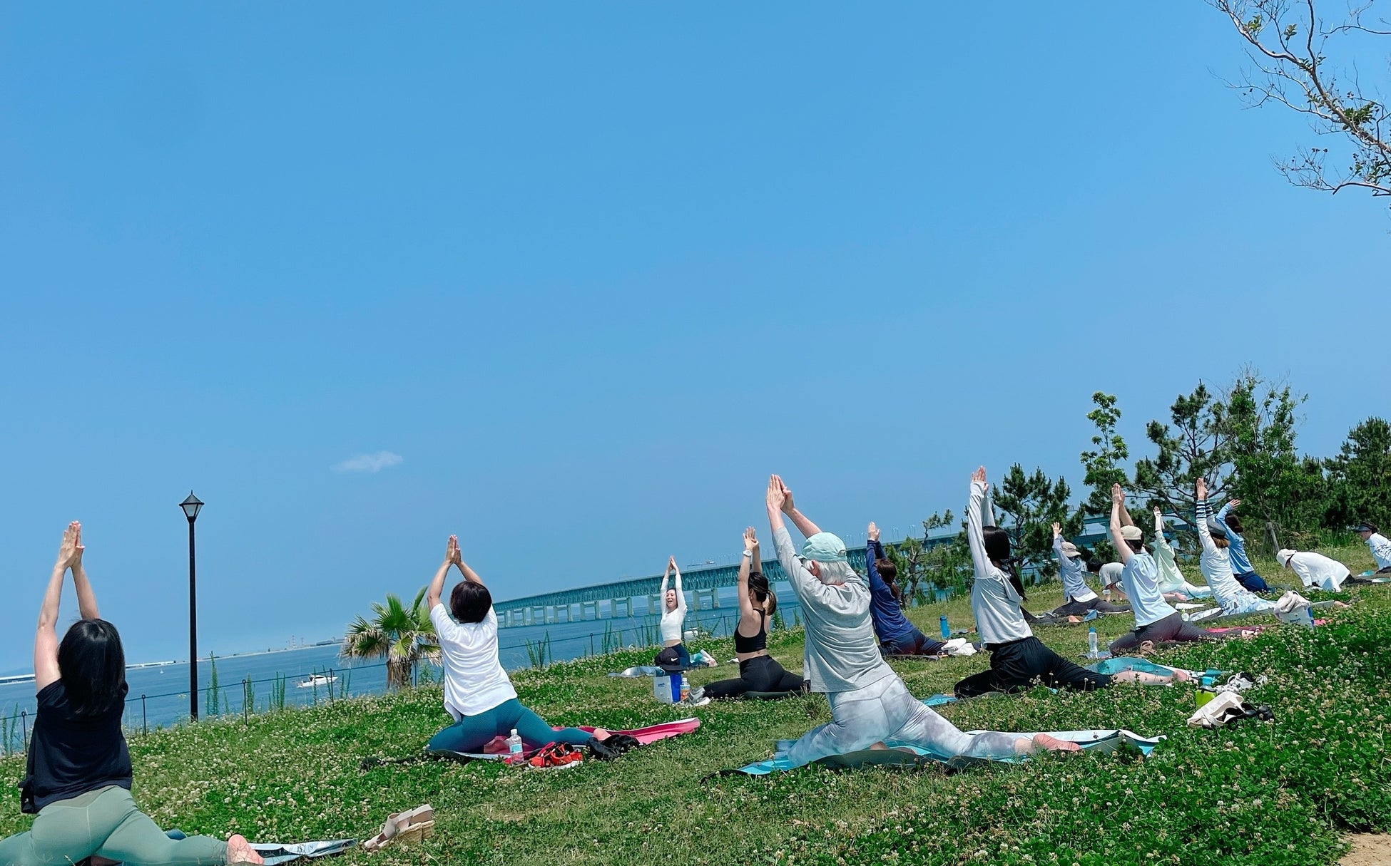 スポーツを通じ、心身、社会的にも健康な「ウェルビーイング」の増進につなげていくことを目的に、海が見えシーサイドパーク内で爽やかな朝ヨガを実施します。