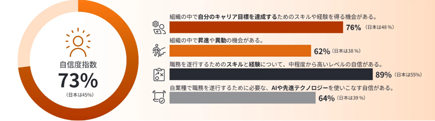 テーマ③自信度指数:グローバル73%(前回調査-3) 日本45%(前回調査-1)