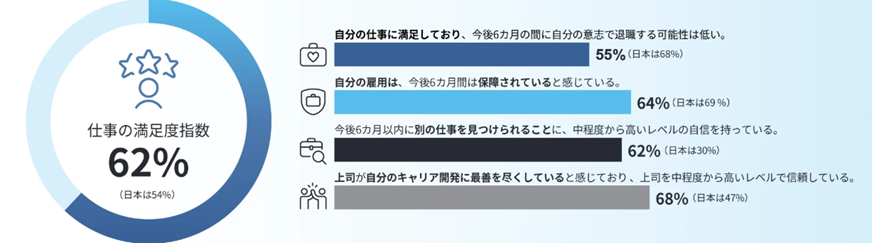 ・今後6カ月以内に別の仕事を見つけられることに、中程度から高いレベルの自信を持っている。(前回調査+2)
