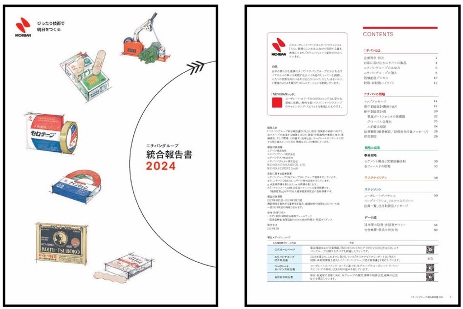 ニチバン株式会社(本社:東京都文京区、代表取締役社長:高津敏明)は、財務・非財務情報を統合的に報告する「ニチバングループ統合報告書2024」を発行し、本日、当社公式ホームページに公開しました。