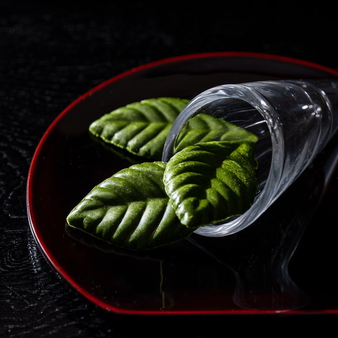また、ご提供のひとときには、食前にお召し上がりいただく「碾茶の水出し」をご用意。抹茶となる前の茶葉本来の旨味を、清らかな一服として口に含んでいただくことで、パフェの重厚な味わいをより鮮明にお楽しみいただけます。