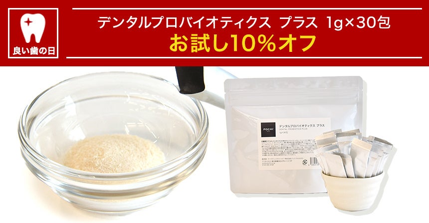 ・《POCHI》「良い歯の日(4月18日)」にちなんで、「デンタルプロバイオティクス プラス」が10%オフになるキャンペーンの紹介ページ